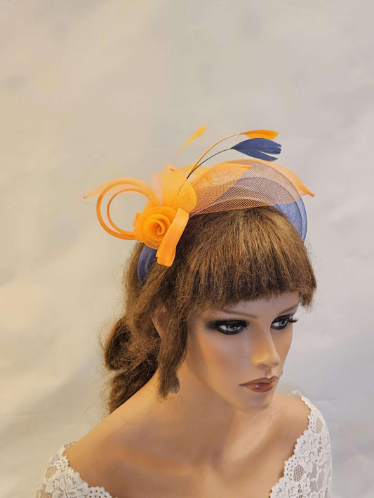 ORANGE and NAVY HEADBAND Fascinator for wedding,Races,TeaParty & Special occasion. Wedding guest,Mother of Bride Headpiece. Moder Headband