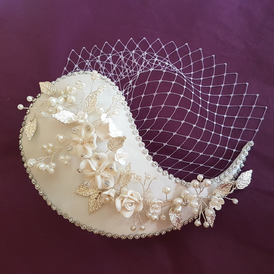 Birdcage veil Hat Fascinator, Bridal Ivory fascinator Wedding Race, Ascot hat, ladies cocktail hat, Birdcage veil Hat Fascinator