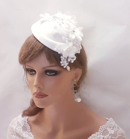 Birdcage veil Floral Hat fascinator White Ivory - ELEGANCEFASCINATOR