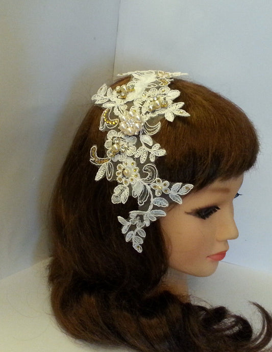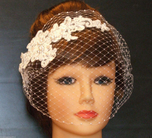 Bridal birdcage veil & Lace fascinator 2 Pc set White, Ivory with stunning hairpiece