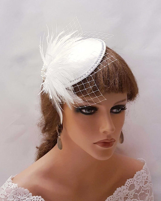 FASCINATOR Birdcage veil White Ivory bridal birdcage veil Bridal fascinator Crystal Pearl bridal hat Wedding headpiece Bridal hat fascinator
