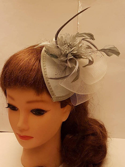 SILVER Grey Hat fascinator Mother of the Bride Saucer hatinator