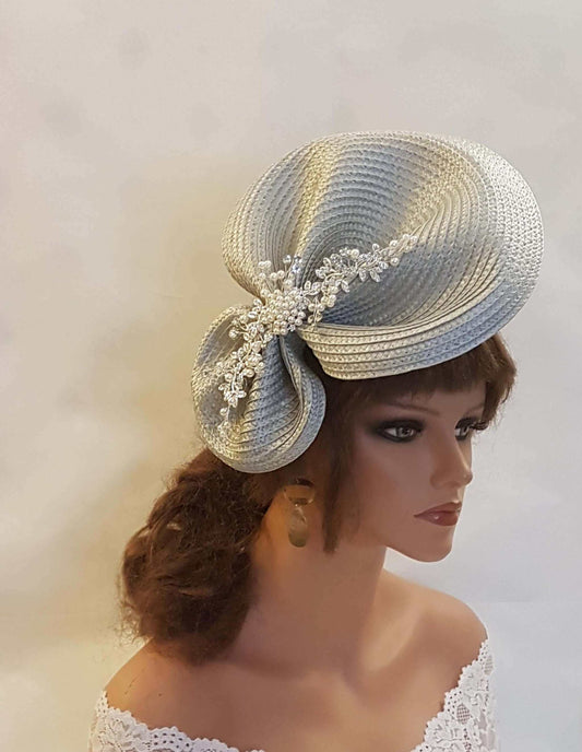 SILVER Grey fascinator hat Pearl,Crystal vine Wedding hat Mother of Bride Hat