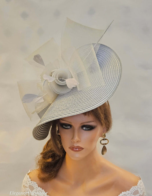 SILVER GREY Mother of bride Hat Fascinator. Church, Wedding Hat Derby,Race Hat-ELEGANCEFASCINATOR