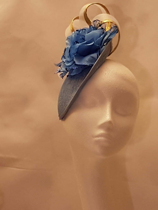 SILVER and BLUE Fascinator Hat For Ascot, Wedding, Mother of the bride