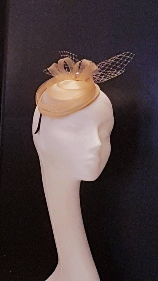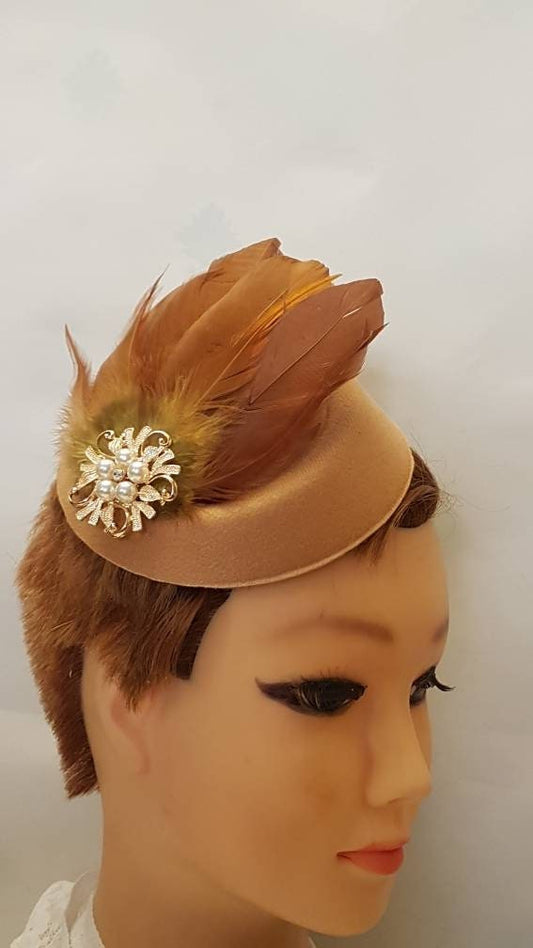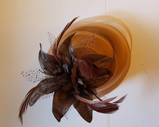 TAN/NUDE FASCINATOR,40s 50s Tan Hat fascinator # Champagne/Tan hat fascinator, Race,Cocktail,Ladies day,Ascot hat Brown feather flower hat