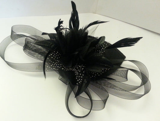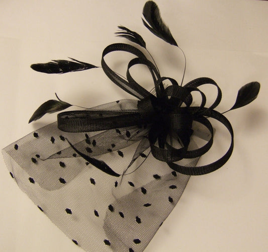 Vintage 1940s-50s Black mini tulle veil Fascinator, wedding Feather Fascinator,ladies feather fascinator veil