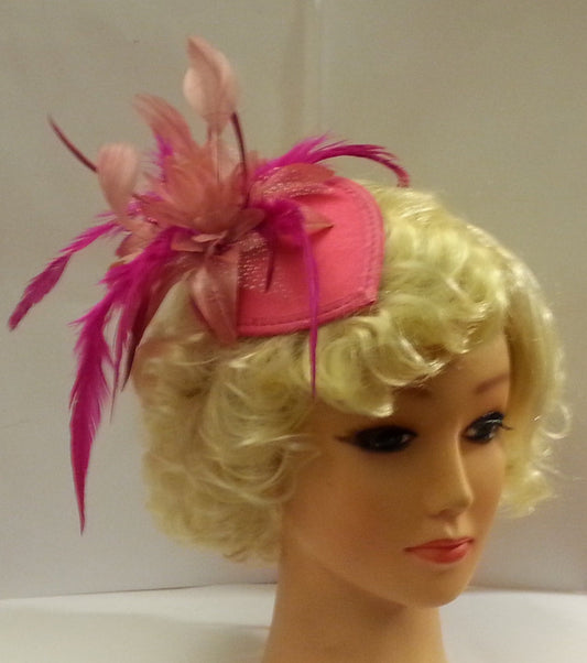 Vintage 1940s-50s Fascinator, HOT PINK Fascinator, Teardrop hat fascinator,feather Fascinator, ladies hat fascinator,ascot fascinator