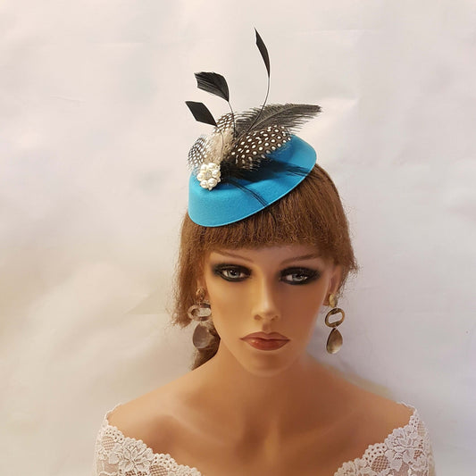 TURQUOISE BLUE HAT Fascinator,40s 50s #Blue Hat fascinator.Ostrich feather,Spotty Gunia Feather hat Race,Cocktail,Ascot hat fascinator