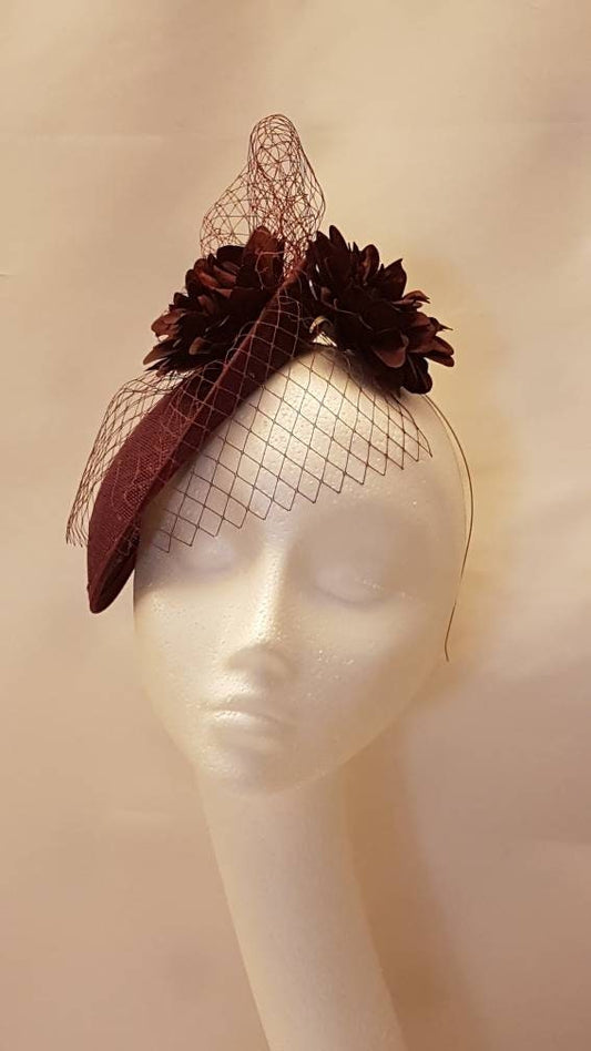 Vintage 40s 50s Hat Disc Hat fascinator Plum /Burgundy fascinator, Mother of bride fascinator. Wedding ,Ascot,Cocktail party fascinator hat