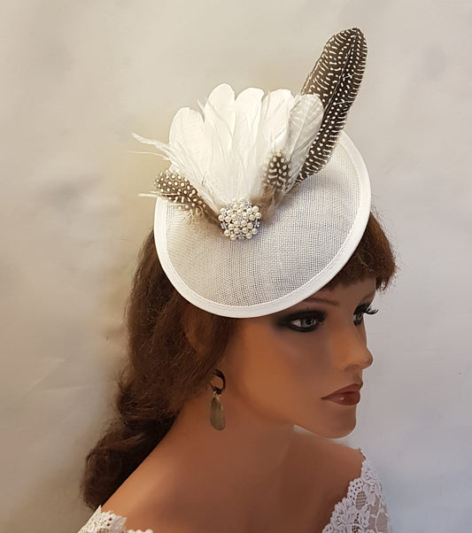 WHITE HAT FASCINATOR Feather Hat Fascinator Race Cocktail hat Ascot party Wedding Hatinator Bridal headpiece sparkly jewelled hatinator