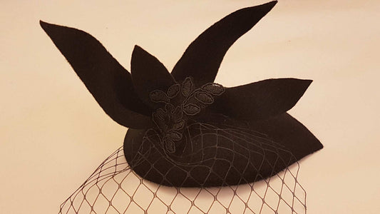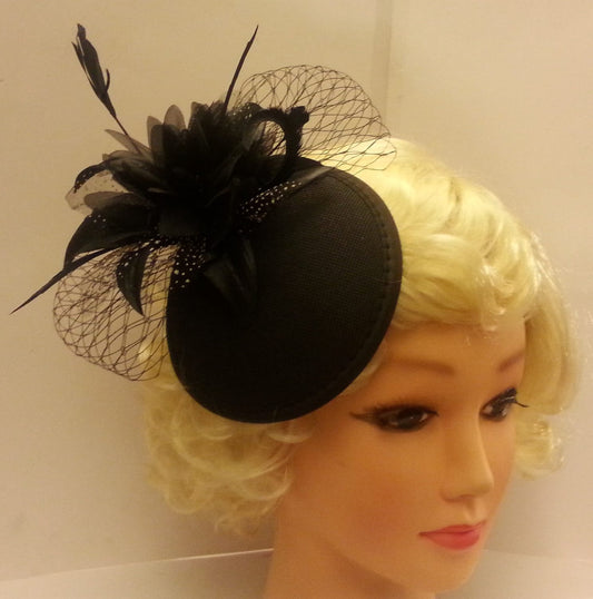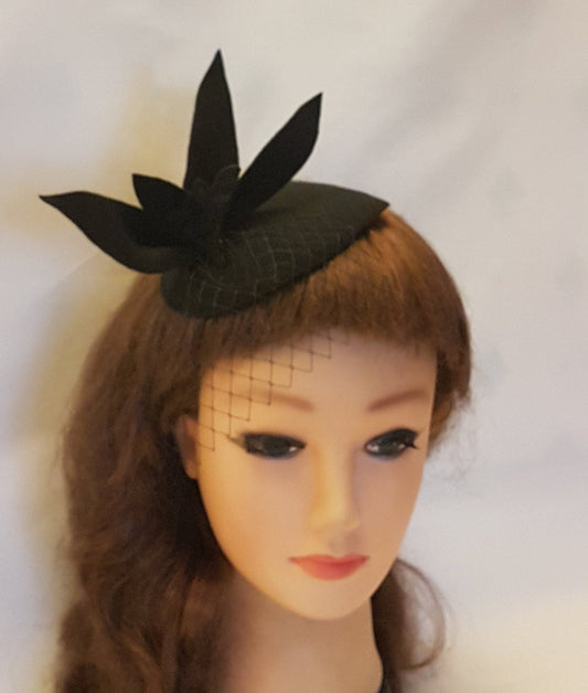 Vintage 40s 50s Hat, Black Hat, Feather fascinator, Black Fascinator Race Cocktail Christmas hat ,Ascot Hat, Cocktail hat, Ladies fascinator