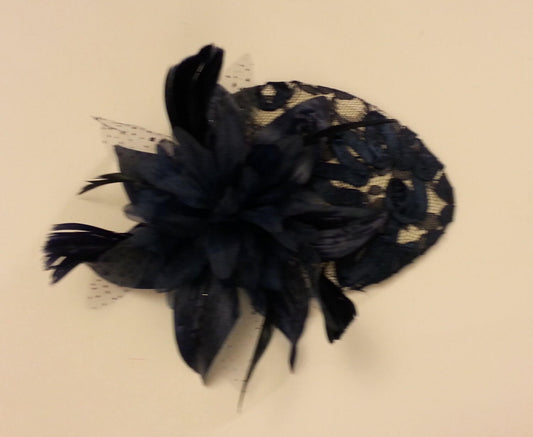 Vintage 40s 50s Hat, Navy Hat Feather fascinator, Cocktail hat, Teardrop hat fascinator, Navyblue & Off White feather flower fascinator hat