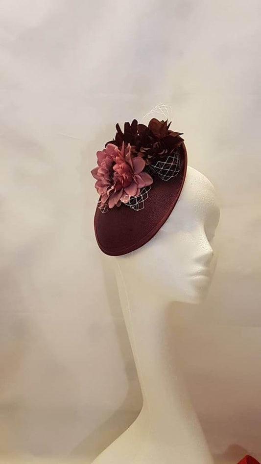 Vintage 40s50s Plum Disc Hat fascinator Plum Purple Dusky Pink flower Hatinator Wedding Royal Ascot Ladies party Church Cocktail Fascinator