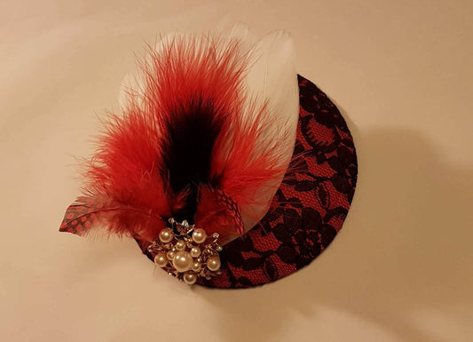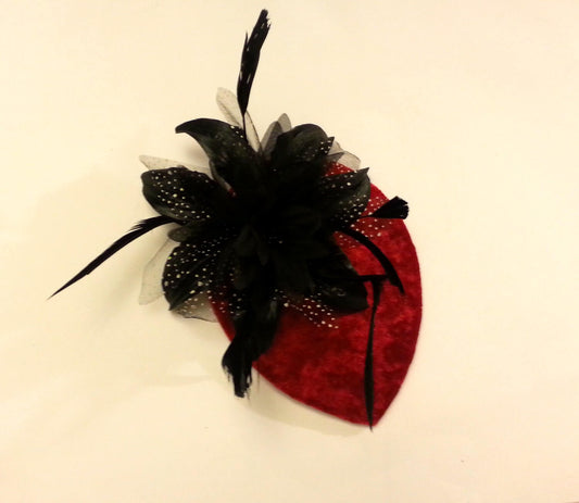 Wedding hat, hair accessory, Red & Black feather facinator, Bridal Feather Fascinator, Feather Hairpiece clip, Christmas feather fascinator