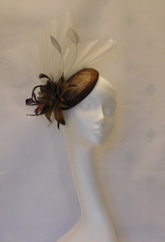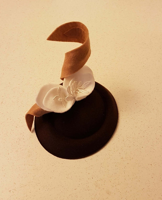 BROWN & TAN Hat fascinator. #BrownHAT fascinator with White felt leaves.Ascot hat fascinator,Wedding Race,Cocktail Church hat fascinator