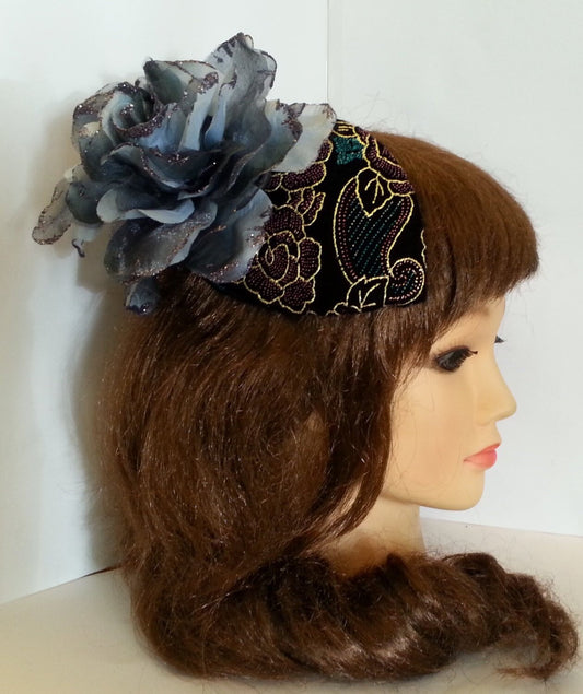 Black velvet Teardrop Hat Race hat Fascinator SILVER GREY Flower, weeding, Cocktail Prom Goodwood revival , Ascot hat