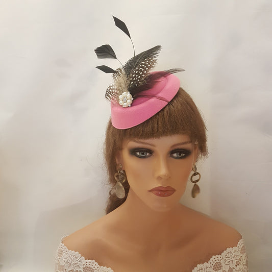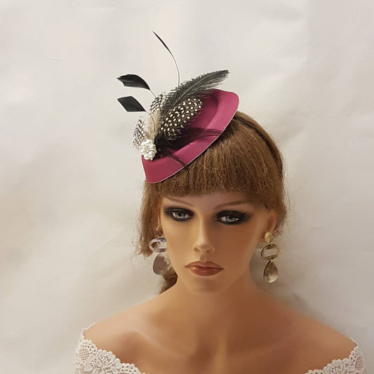 MAGENTA HAT FASCINATOR, 40s50s Pink Hat fascinator #Pink hat fascinator, Ostritch,Spotty Guinea Feather hat Race,Cocktail,Ladies ,Ascot hat