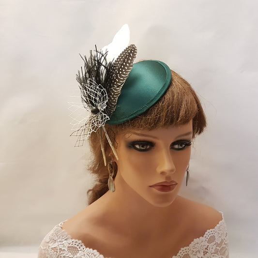 Hat fascinator Vintage 40s 50s BOTTLE GREEN feather Hatinator Green Fascinator Hat Race Cocktail Ascot party hat Wedding party fascinator