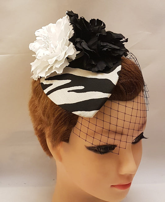 Hat fascinator, Vintage 40s 50s Hat BLACK & WHITE Teardrop Hat fascinator Race Cocktail hat, Ascot Hat, Cocktail hat, wedding headpiece