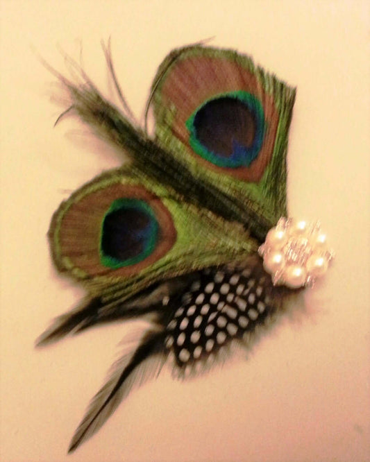 1920s Peacock Feather Fascinator, sparkly Crystal Pearl Brooch Blue Green hair Clip #Gatsby headpiece, #Bridal Bridesmaids fascinator clip