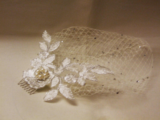 Bird cage veil Wedding bird cage veil SILVER thread lace fascinator, Silver, Black, White & Ivory French net Blusher Veil, crystal or Pearl