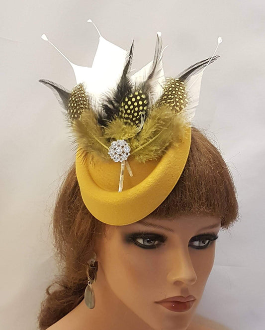 Fascinator Hat Mustard Gold Pillbox Hat fascinator #Mustard Gold Feather hat Ascot derby Wedding Race Cocktail Ladies Church hat fascinator