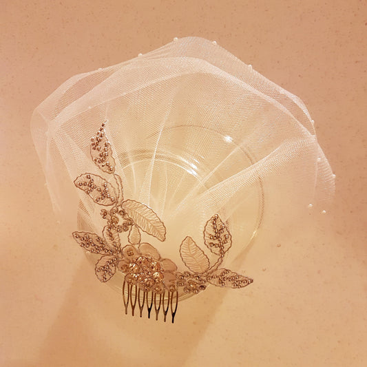 Fascinator veil, Bridal veil, mini blusher veil, Headpiece, flower applique Blusher, Wedding Hair Accessory, Bridal 2 Tier Tulle Head Piece