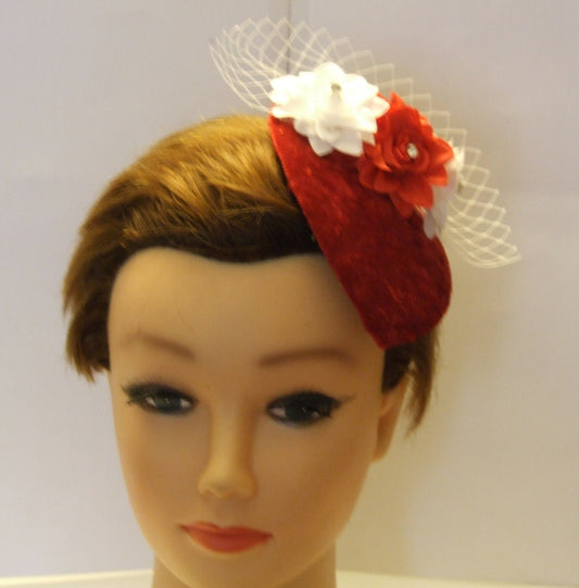 Fascinator White Felt fascinator # RED & WHITE FELT Hat fascinator , Wedding, Ascot,Cocktail,Church Hat fascinator,White Hat with Flower Hat