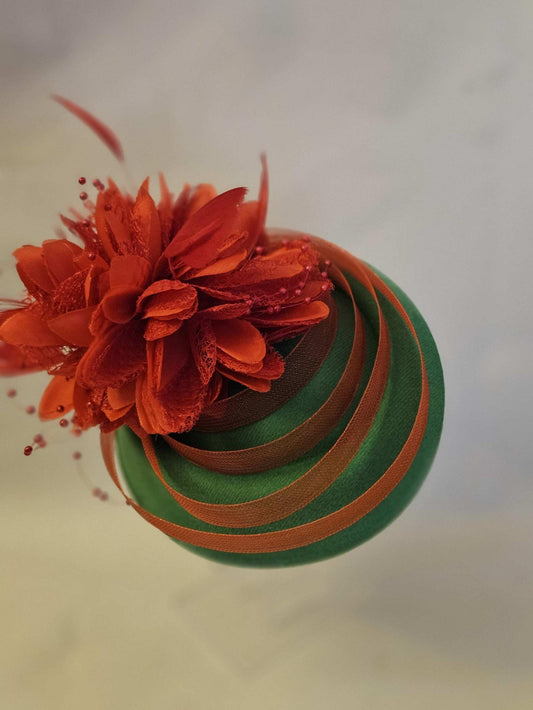 GREEN & RED Hat Fascinator Lace Headband fo Wedding,Ladies Day,Tea Party,Royal Ascot Race. Wedding Hat.Green Felt hat with Red Flowers