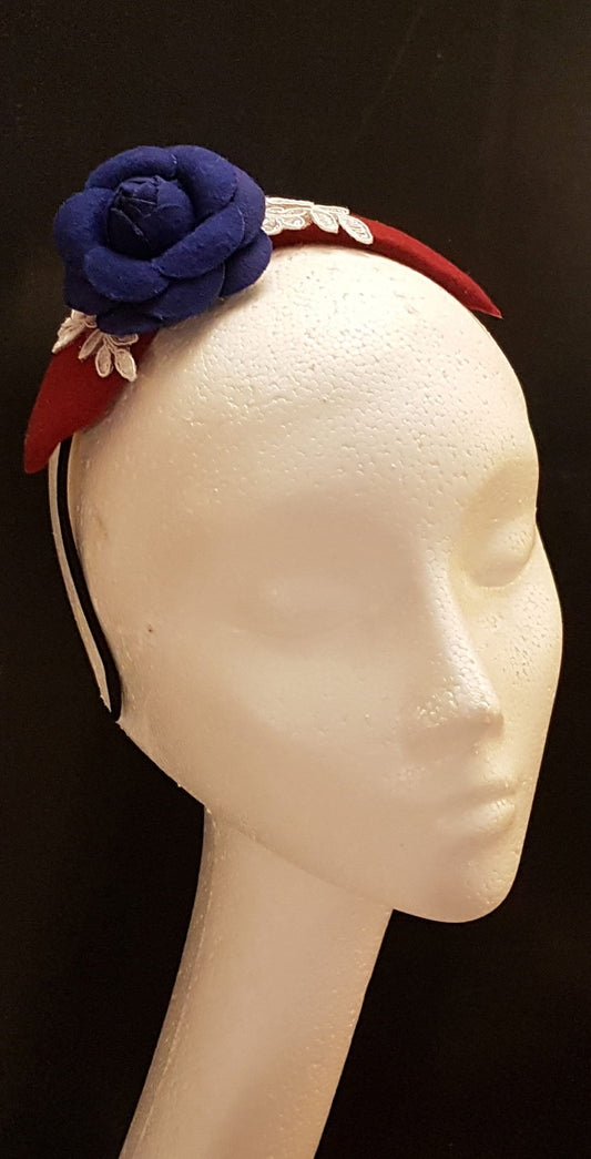 MAROON FASCINATOR, Modern Felt fascinator Headband Royal BLUE felt Rose #Maroon l fascinator. Cocktail,Ladies day,Wedding flower Hairpiece