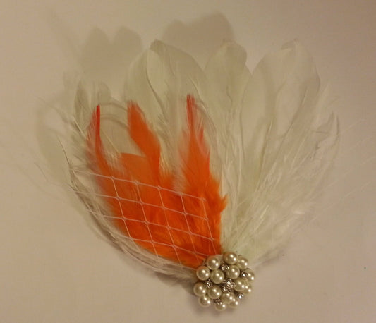 wedding hair accessory, Gatsby Orange feather clip, Bridal Hair Piece Bridesmaid Feather Fascinator, Gatsby Hair Piece, Flapper headpiece,