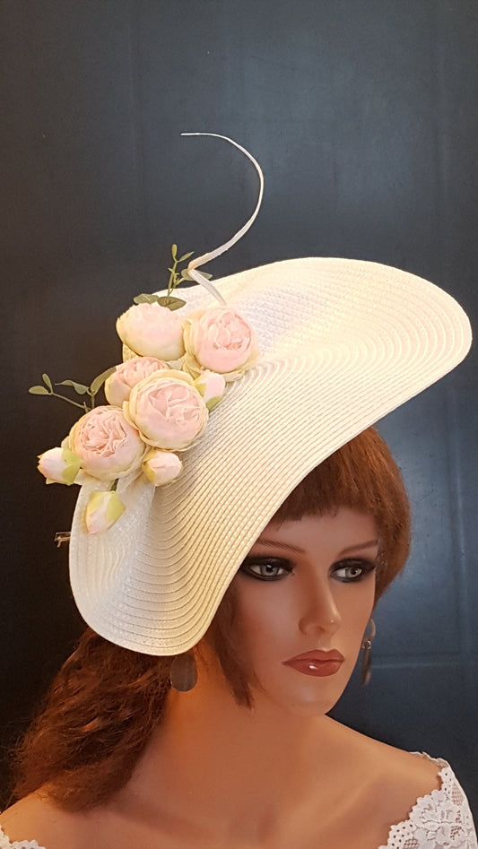 White & Pink fascinator Hat Large saucer Hatinator Tea Party Ascot Mother of Bride Hatinator
