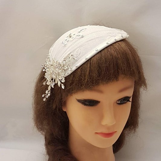 Bridal Birdcage veil Hat fascinator White Ivory. Crystal, Pearls & Leaf - ELEGANCEFASCINATOR