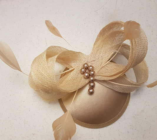 CHAMPAGNE/LATTE FASCINATOR Hat.Silver grey, Blush Pink, Navy, Ascot hat Wedding Race Cocktail Church hat