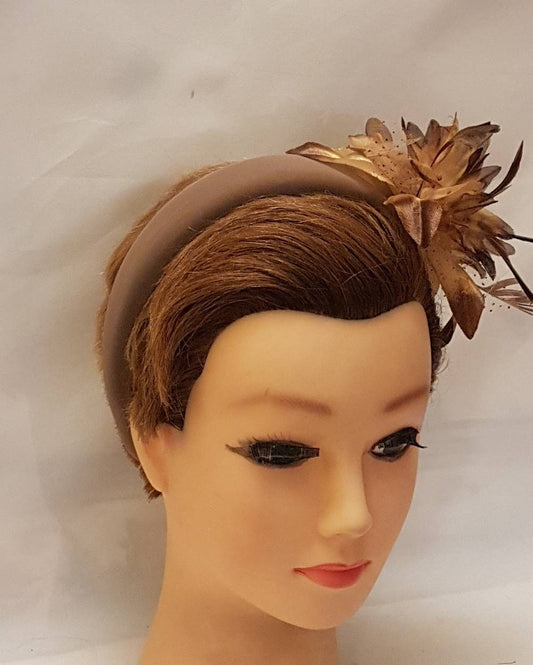 BROWN Padded Headband fascinator. Feather Flower SUEDE Padded Headband Fascinator Headpiece Halo Padded Hair Crown Races Wedding Prom headb