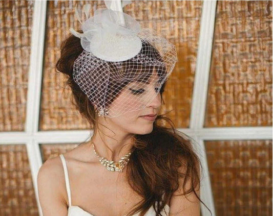 Birdcage veil fascinator Hat White Ivory - ELEGANCEFASCINATOR