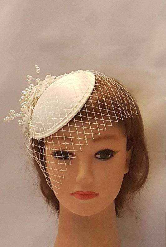 Birdcage veil Hat Fascinator, Bridal Ivory fascinator Wedding Race, Ascot hat, ladies cocktail hat, Birdcage veil Hat Fascinator