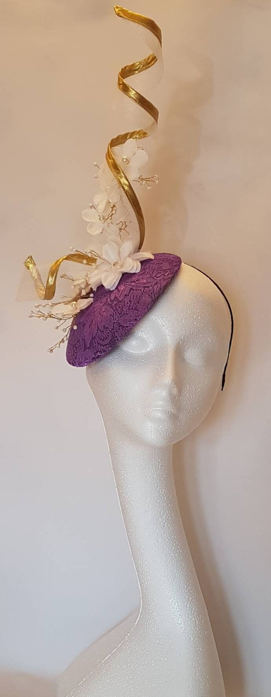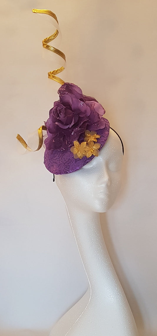 PURPLE & GOLD Fascinator Hat 40s 50s Hat fascinator #Gold edge swirl hat fascinatorWedding, Race,Cocktail hat Ladies Ascot hat Purple hat
