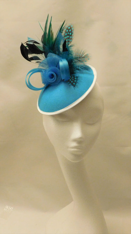 TURQUOISE BLUE fascinator large saucer hatinator -ELEGANCEFASCINATOR