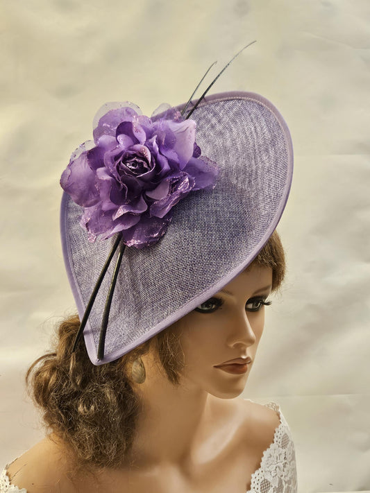 Purple Hat Fascinator long Quill Feather Wedding Hatinator Deeppurple hat Floral Fascinator Mother of Bride,Groom Cocktail Ascot fascinator