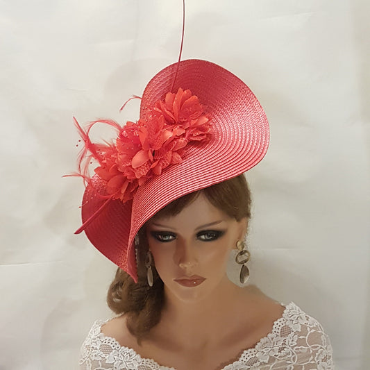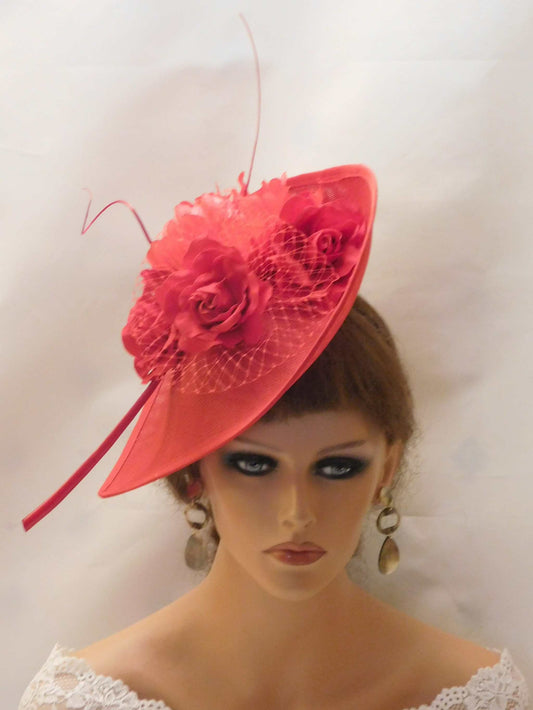 RED fascinator large saucer hat Quil Floral women hatinator Derby Ascot Royal Wedding Cocktail Party Mother of Bride/Groom Hat Fascinator
