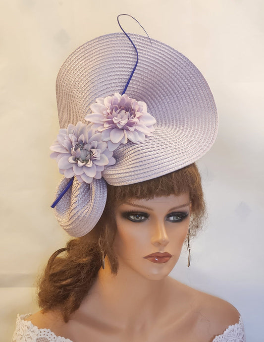 Lilac Lavender fascinator hat large saucer floral hatinator for Church Derby. Ascot. Mother of Bride