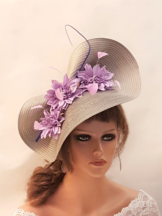 Lilac Grey fascinator large saucer hatinator Quil Floral Church Derby Ascot Hat Race Wedding TeaParty hat Mother of Bride/Groom Hatinator