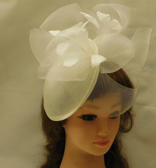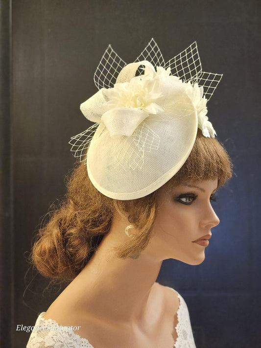 Ivory fascinator large saucer hatinator Feather Floral Church Derby Royal Ascot Hat Race Wedding Party hat Mother of Bride/Groom Hatinator