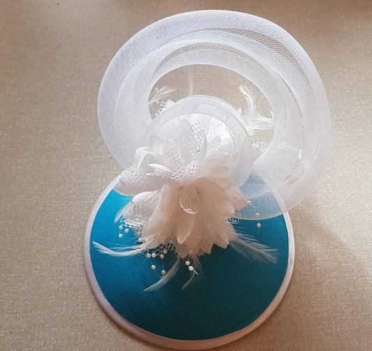 FASCINATOR, 40s 50s Blue Hat fascinator #BLUE & WHITE hat fascinator Wedding, Race,Cocktail hat, Ascot hat feather fascinator flower hat