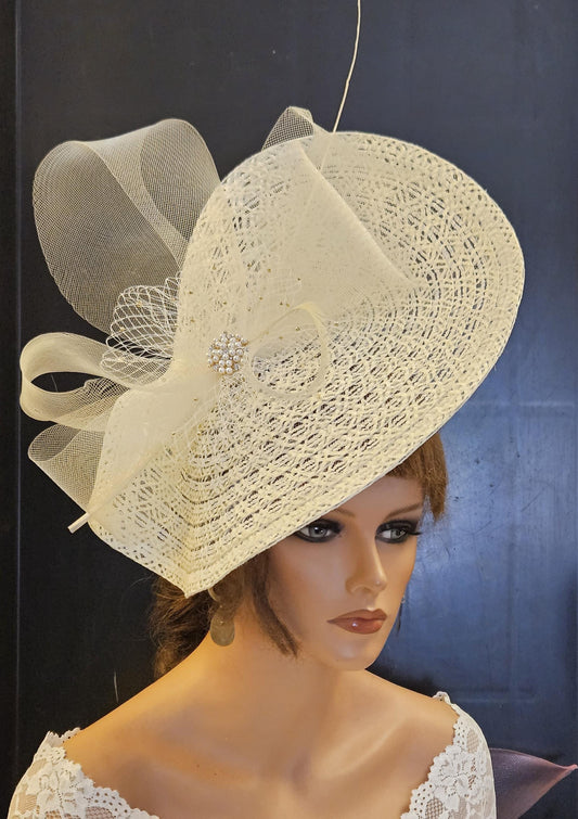 IVORY fascinator large 30 cm Tear drop hatinator Quil Floral Church Derby Ascot Race Wedding TeaParty hat Mother of Bride/Groom Hatinator