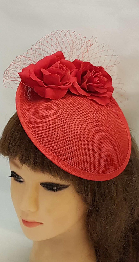 FASCINATOR,Red Hat with red Roses. Wedding,Church hat Fascinator Goodwood,Kentucky derby hat, Cocktail ,Ascot Hat , Autumn/Winter Fascinator