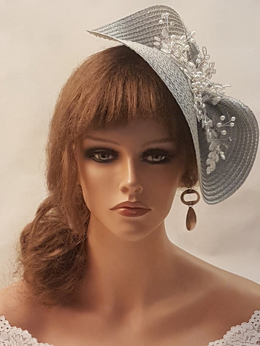 Grey FASCINATOR #PALE GREY hatinator Unique Weddding Headdress Derby Royal Ascot hat Wedding Church Mother of the Bride Cocktail headpiece