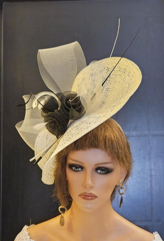 Ivory & Black fascinator large hatinator Feather Floral Church Derby Royal Ascot Hat Race Wedding Party hat Mother of Bride/Groom Hatinator